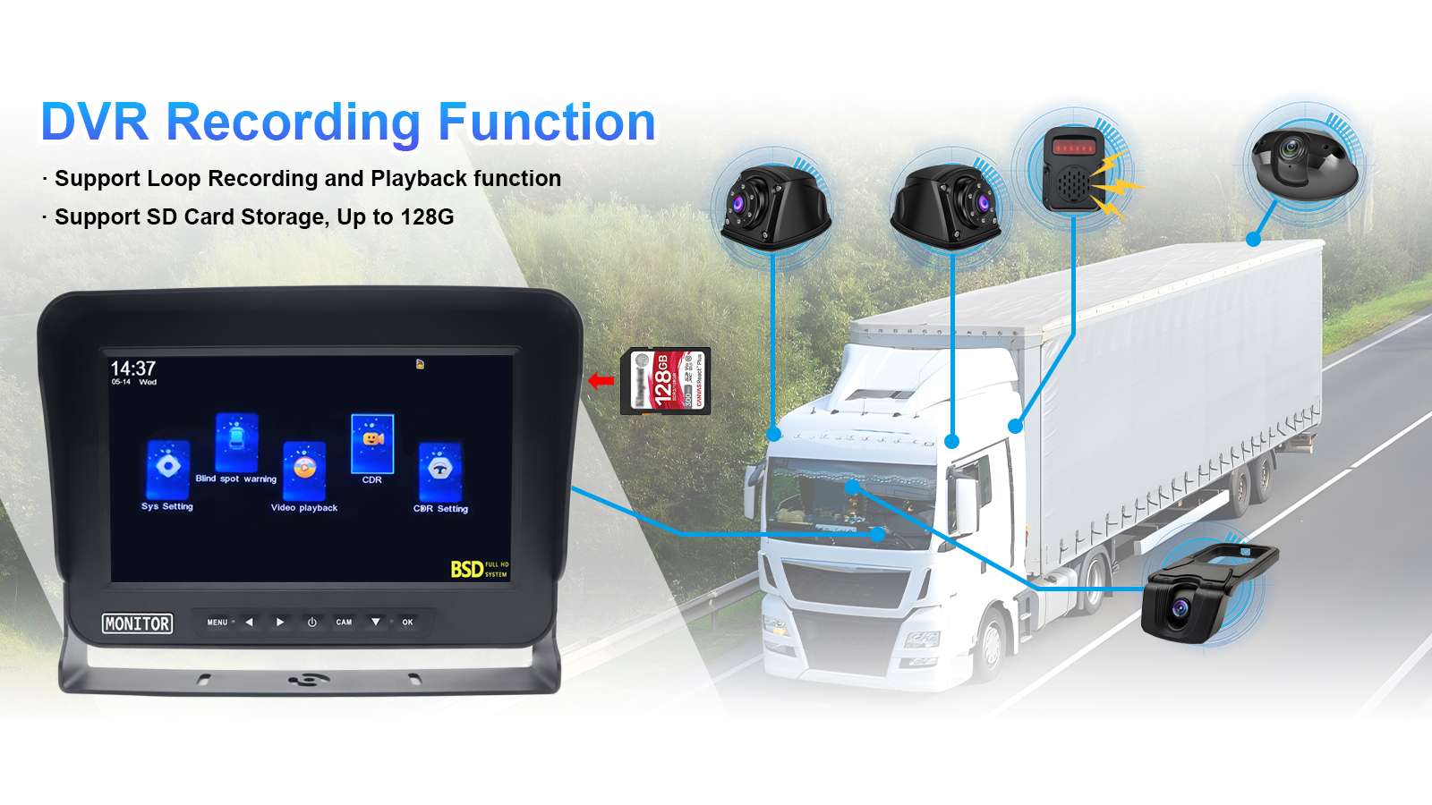Carleader 10.1 inci Kenderaan BSD BSD Buta Sistem Pemantauan Pengesanan, sesuai untuk pengurus armada atau pemandu individu, ia memastikan perjalanan yang lebih selamat melalui pengesanan bahaya proaktif.