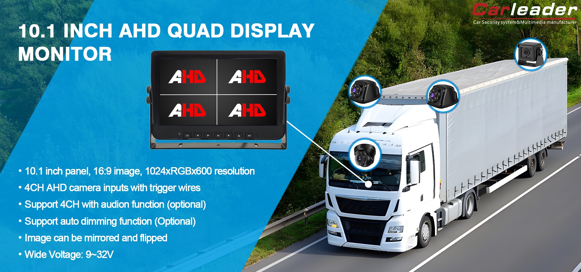 10.1 inci quad ahd monitor:http://www.szcarleaders.com/10-1-inch-4av-inputs-quad-view-ahd-vehicle-monitor.html
