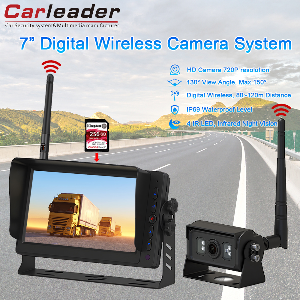 CarleaderRakaman DVR 7 inci Sistem Pemantauan Tanpa Wayar 2.4GHzadalah canggihmonitor tanpa wayar dan sistem kamera designed for commercial vehicles, including buses, trucks, trailers, and cranes. Combining high-resolution imaging, robust durability, and versatile connectivity, this system ensures enhanced safety and visibility in demanding environments.