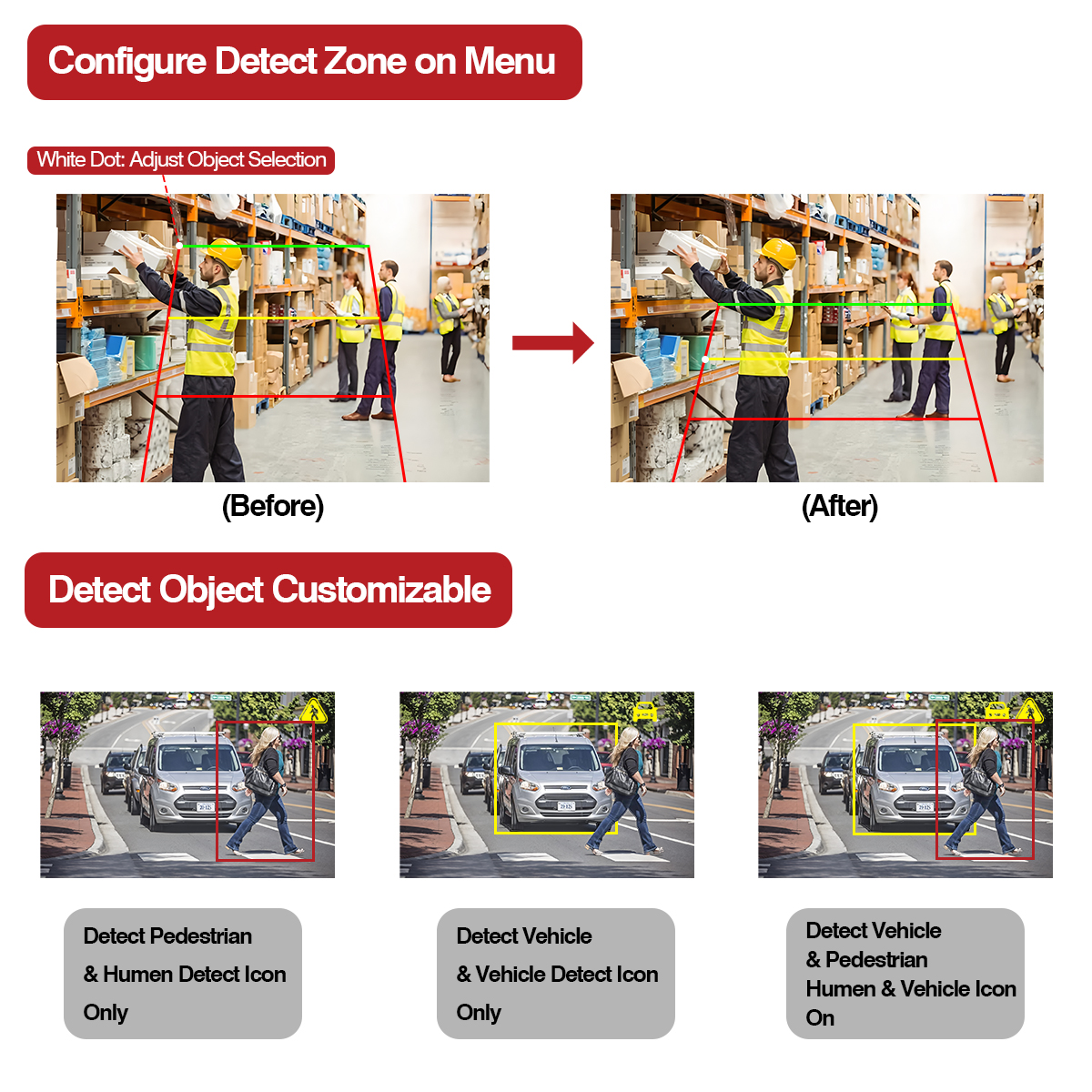Menyokong pensuisan berbilang mod: pengesanan pejalan kaki sahaja, pengesanan kenderaan sahaja atau mod campuran untuk memenuhi keperluan pelbagai senario.