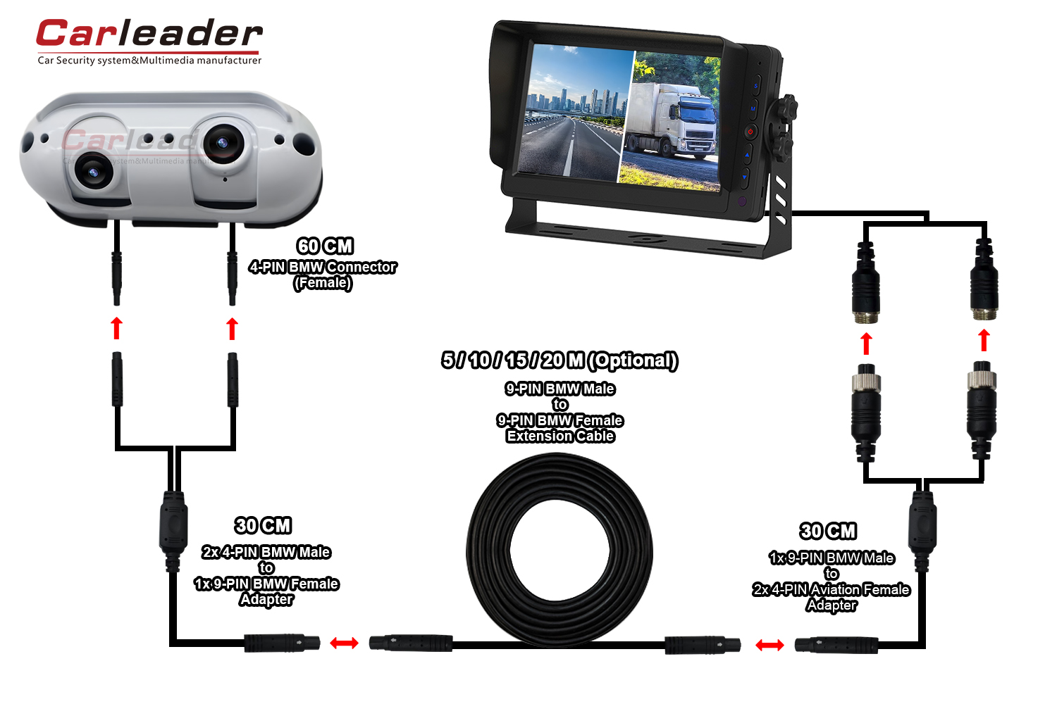 Carleaderakan menawarkan dua penyelesaian pendawaian berbeza untuk AHD Starlight Dual Lens Heavy Duty Rear View Camera, untuk memenuhi keperluan pendawaian yang berbeza: