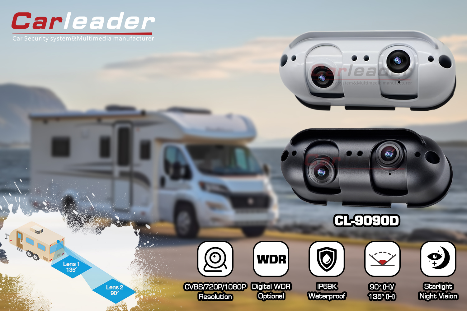 CarleaderAHD Starlight Dual Lens Kamera Pandangan Belakang muat Untuk RV Motorhome, kamera pandangan belakang AHD perkakasan peribadi daripada Carleader, reka bentuk dwi kanta membolehkan pengguna mempunyai prestasi penglihatan yang jelas bagi penglihatan spion jarak dekat dan jauh. Perumah aloi aluminium dan penarafan IP69K menjadikan kamera lebih kukuh dan tahan lama dalam sebarang keadaan cuaca yang teruk. Kamera ini bukan sahaja sesuai untuk kenderaan tugas berat, seperti trak, bas, forklift, dll; juga sesuai untuk kenderaan bermotor, seperti RV dan karavan.