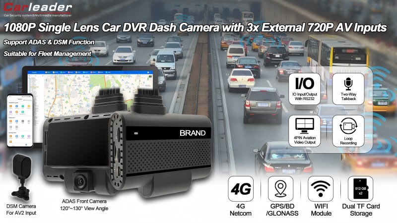 Carleader4CH AI Powered ADAS+DSM Dash Camera Support Output Videoialah kamera DVR kanta tunggal berprestasi tinggi yang direka untuk keperluan keselamatan dan pemantauan kenderaan moden. Dilengkapi dengan sistem bantuan pemandu lanjutan (ADAS) dan pemantauan status pemandu (DSM), peranti ini menawarkan keselamatan komprehensif dan makluman masa nyata untuk meningkatkan keselamatan pemanduan.